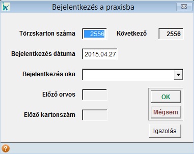 a beteg visszavételre, illetve felvételre kerül a praxisba. A törzskarton számon manuálisan