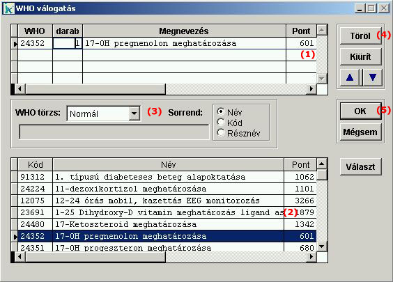 WHO kódok mindegyike átemelődik a választott kódok ablakrészbe. Ez a funkció