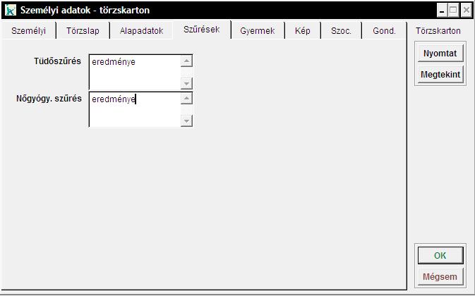 és a szöveg színe is. A dohányzás és alkohol rovatok a karbantartható legördülő listából kitölthetők.Az ablak jobb alsó sarkában található |