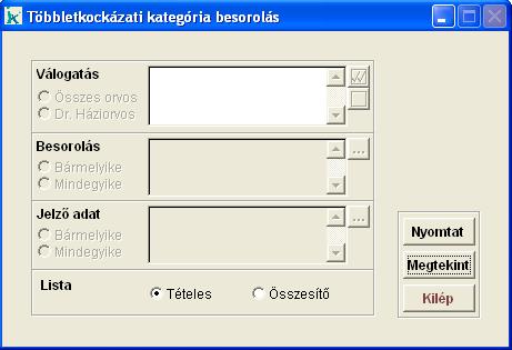 Kérhető 'Tételes lista' a páciensek adataival és kategória besorolással,