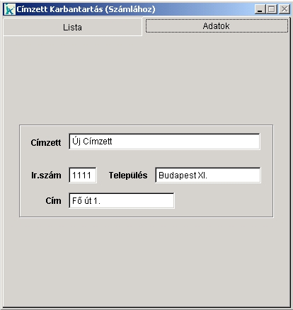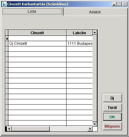 Címzett Karbantartás (Számla) / Lista - képernyőkép