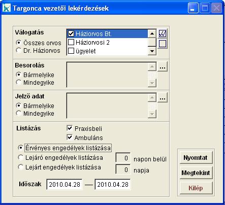 listát 'Praxisbeli' vagy 'Ambuláns' paciensekre, valamint megadhatjuk,