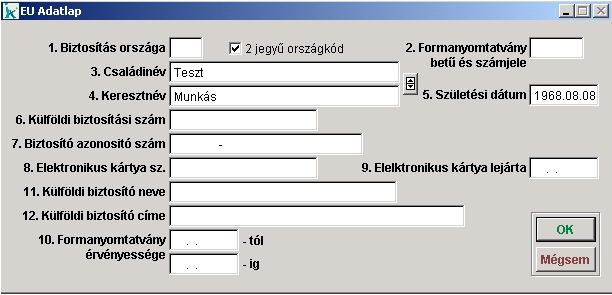 Ebben a menüpontban a külföldi állampolgárságú páciens adatait tudjuk rögzíteni. |