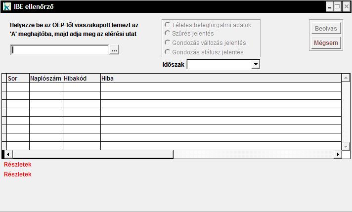 A 'Beolvas' gombbal történik meg a beolvasás, tehát az ablakban található táblázatban megjelennek a hibák.