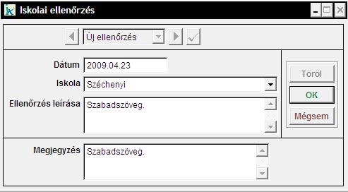 Ebben amenüpontban az Iskolai ellenőrzéseinket rögzíthetjük.