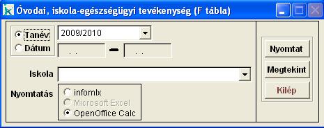 Ebben a menüpontban a megadott időszakban és a kiválasztott iskolában elvégzett