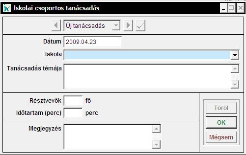Ebben a menüpontban az iskolai védőnők rögzíthetik az iskolai tanácsadással kapcsolatos tevékenységüket.