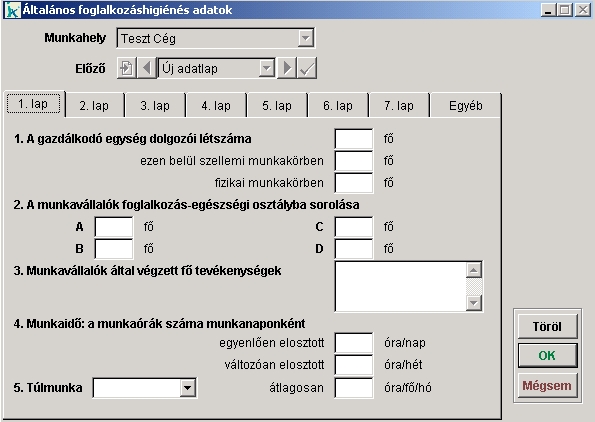 Ebben a menüpontban tölthetünk ki általános foglakozáshigiénés adatlapot.