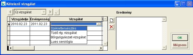 Ebben a menüpontban a kötelező vizsgálatok eredményeit adminisztrálhatjuk.