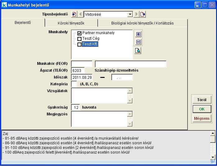A bejelentő alján megjelennek a megadott kóroki tényezők részletei és a vizsgálat gyakorisága.