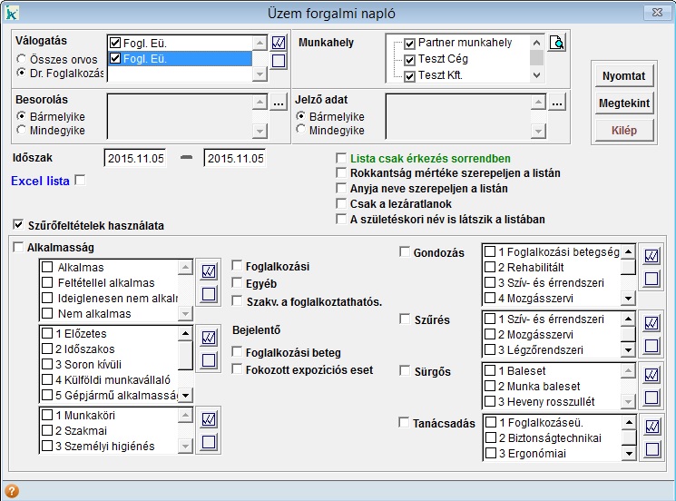Ebben a menüpontban nyomtathatjuk ki az üzemorvosi rendelés forgalmi
