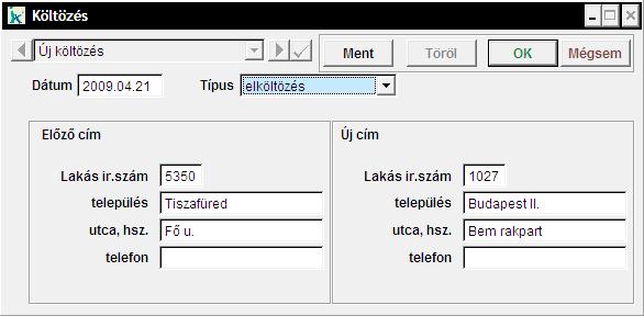 Ebben a menüpontban a be- illetve elköltözéseket tudjuk rögzíteni.