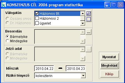 Ebben a menüpontban a KONSZENZUS CÉL 2006 programba felvett adatokról tudunk statisztikát készíteni. |