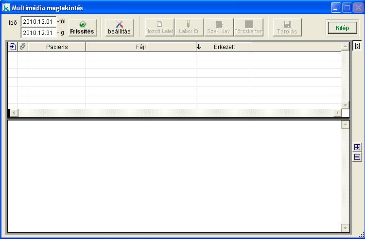 Az ablak 3 fő részből áll: Felső gombsor, a Fájllistát tartalmazótáblázat és a Megjelenítő terület.