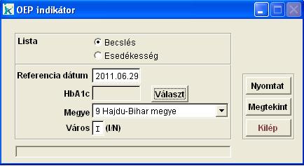 ad a saját indikátor értékekre, vagy Esedékesség vizsgálatot tudunk készíteni. Ez utóbbi választása esetén kigyűjthető, hogy az egyes indikátor körökben mely pácienseknek esedékes az indikátor szempontjából a vizsgálata.