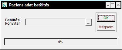 A betöltési könyvtár meghatározása a választó nyomógombon keresztül határozható meg. Ez lehet a számítógépen lévő helyi lemez (ha előtte rámásollták a számítógépre a betöltési könyvtárat), vagy pléldául CD, pendrive, floppy. Ez a betöltési könyvtár tartalmazza a másik visual programból kitöltött, az ott rögzített paciens adatok állományát. Ha betallóztuk a könyvtárat, nyomjuk meg a 'Select' gombot. Ezután az 'OK' gomb megnyomásárra indul a betöltés.