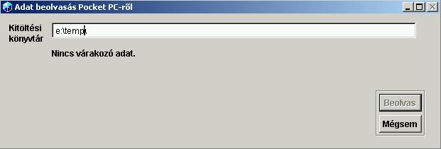 érkezett a főgép számára adat a PDA felől, úgy azt a beolvas nyomógombra