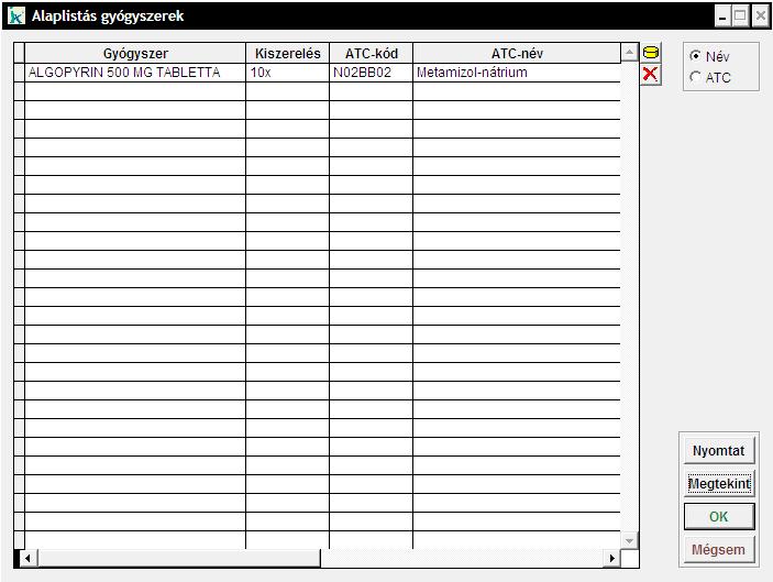 Gyógyszerkeresés segítségével emelhetünk gyógyszereket, valamint a gombbal tudunk törölni.