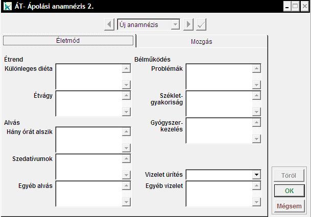 Ebben a menüpontban a gondozott ápolási anamnézisét tudjuk rögzíteni. Ha korábban már rögzítettünk anamnézist, akkor