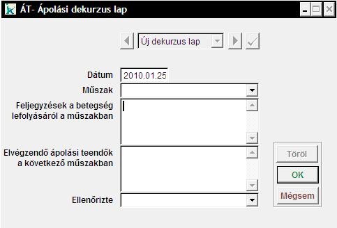Ebben a menüpontban a gondozott dekurzus lapját tudjuk rögzíteni. A betegség lefolyását és az elvégzendő ápolási teendőket tudjuk dokumentálni. Ha korábban már rögzítettünk dekurzus lapot, akkor