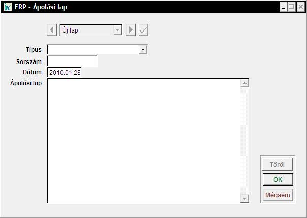 A 'Töröl' gombbal tudjuk a már meglévő lapot törölni. Az 'OK' gombbal zárjuk be az ablakot az adatok tárolásához.
