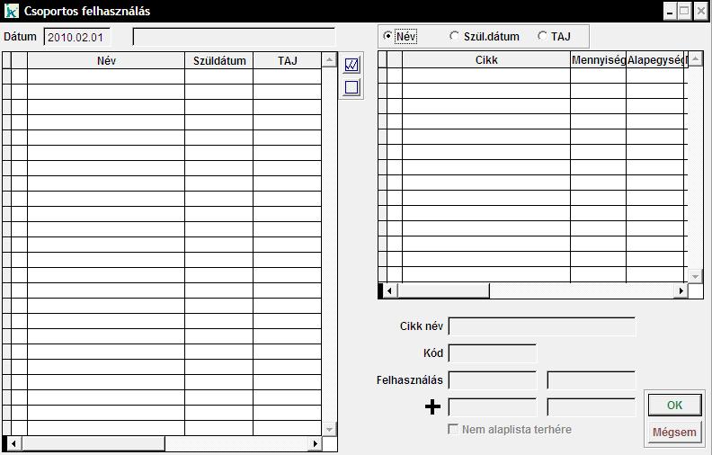 A kiválasztott gondozottak utolsó egyéni felhasználása alapján átvezethetjük az aktuális dátumra a gyógyszerfelhasználásokat. Ehhez válasszuk ki az átvezetni kívánt gondozottakat, majd nyomjuk meg az 'OK'gombot.