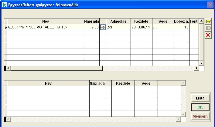 ugyanazon adatokat tartalmazó sort nyit. Itt módosíthatjuk az adagolást pl. napi 3 szemre.