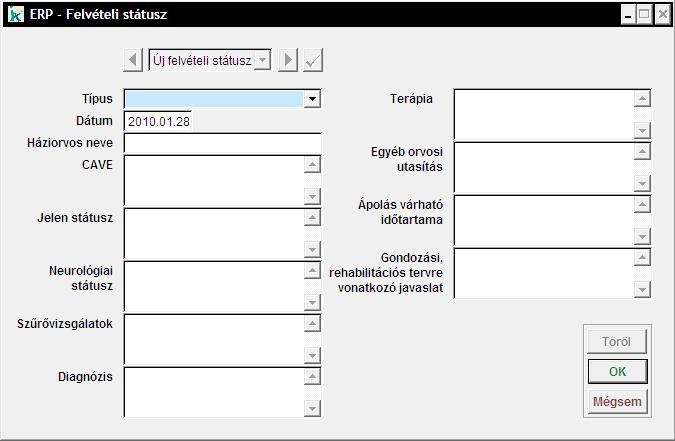Ebben a menüpontban a gondozott felvételi státuszát tudjuk rögzíteni. Ha korábban már rögzítettünk státuszt , akkor