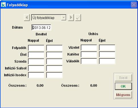 folyadék bevitelét és ürítését tarthatjuk nyílván. A Folyadéklap heti lista menüpont segítségével összesítő listát készíthetünk.