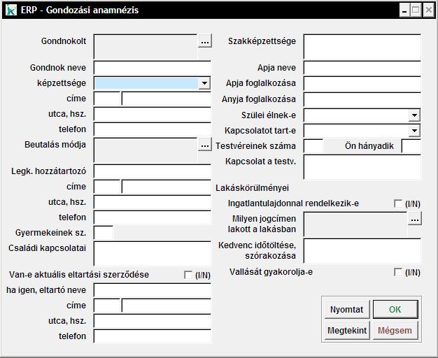 Ebben a menüpontban a gondozott családi környezetét tudjuk vizsgálni, leírni.
