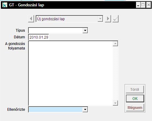 Adjuk meg a gondozás típusát. A 'Dátum' mező automatikusan a munkadátummal töltődik fel.