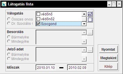 Látogatási naplójában rögzített látogatási eseményeket tudjuk megtekinteni a megadott 'Időpontban' (a mezőbe jobb egérgombbal kattintva naptár funkciót kapunk segítségül).