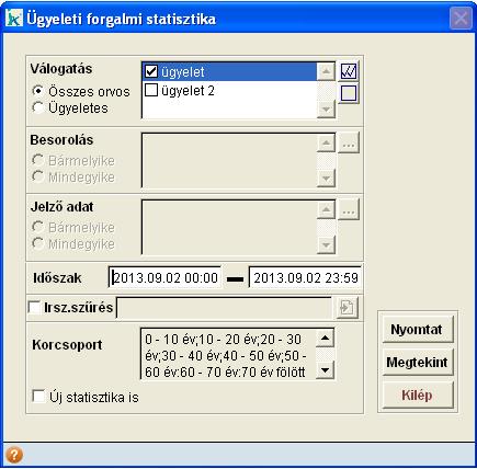 Az ablakon bejelölhető, hogy az új statisztikát is kérjük. Ha bejelöltük akkor a szokásos korcsoportbontás után, az ellátás helye, illetve a TAJ típusa alapján is elkészíti a program az adott listát.