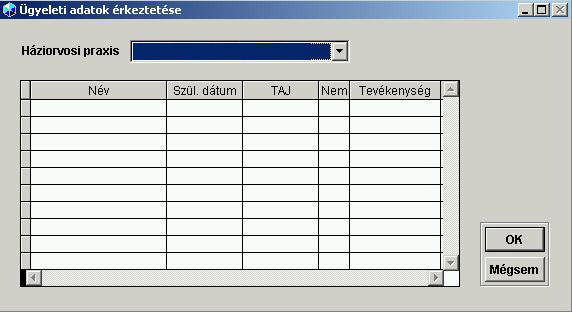 A háziorvosi praxisból az ügyelet számára beküldött adatokat lehet itt az ügyeleti rendszerbe beolvasni. A kiválasztott praxis által küldött személyek adatit az ügyeleti rendszerbe betöltve már alapinformációkkal rendelkezhetünk az adott paciensről ezentúl, ha az az ügyeleti ellátást legközelebb igénybe veszi. |