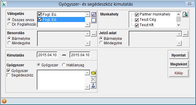 Ha nem adunk meg egy konkrét gyógyszert, akkor az adott időszakban felírt összes gyógyszer szerepelni