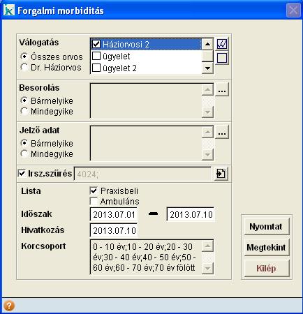 A válogatás mezőben megadható, hogy mely orvos(ok)ra és mely praxis(ok)ra kérjük a lista