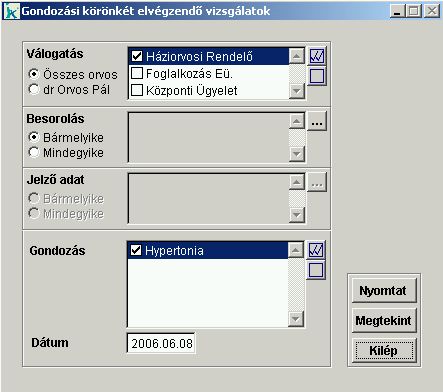 meghatároztuk a szükséges vizsgálatokat. A lista a megadott bázisdátumra