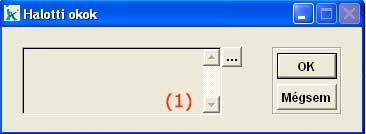 Halál miatt távoztatott betegeink halotti diagnózisait rögzíthetjük utólag ebben a menüpontban. A BNO ablak (1) kitöltése az általános részben ismertetettek szerint zajlik. Figyelem! A távoztatott beteg csak akkor jelenik meg a személyválasztó ablakban, ha ezt az opciót külön kiválasztjuk! |