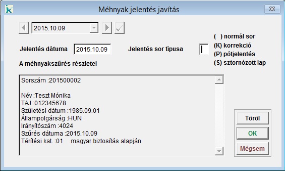 Itt módosíthatjuk a beteg leadandó jelentés sorának státuszát illetve azt, hogy az adott sor melyik havi jelentésbe kerüljön be. A program a menüpontot megnyitva betölti a kiválasztott