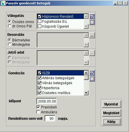megadott nap számon belül nem jelentek meg gondozási kontrollon. Külön feltételként