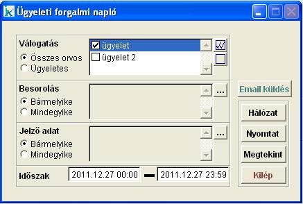A válogatás mezőben megadható, hogy mely orvos(ok)ra és mely ügyelet(ek)re kérjük a lista