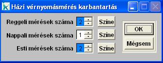A Karbantartás (10) nyomógombbal egy ablakot nyitunk ki ahol azt lehet beállítani, hogy reggel, napközben és este mennyi mérést akarunk elvégezni és ezeket milyen színnel jelölje.