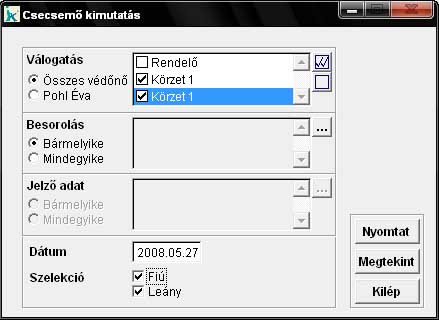 Ebben a menüpontban egy lista készíthető a megadott évben született gyerekekről, havi és súly szerinti bontásban, lehetőség van külön a fiúk, és külön a lány újszülöttekről kérni a listát. A lista a megadott dátumtól visszamenőlegesen egy éven belül született csecsemőkről készül. |