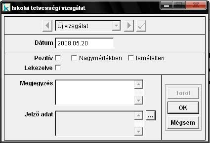 Tetvességi vizsgálat tényét és eredményét lehet rögzíteni ebben a menüpontban.