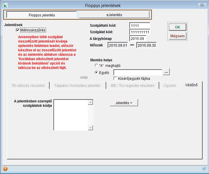 A program segítségként a A Jelentésben szereplő szolgálatok kódja mezőben