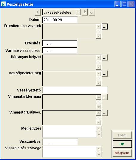 a menüpontban a veszélyeztetett terhességgel kapcsolatos adatokat rögzíthetjük. Gondozástól független, személyhez rögzíthető adatokat menthetünk itt el.