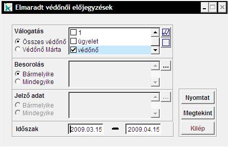 Azon betegek névsorát készíti el a program, akik a megadott időszakban elő voltak jegyezve vagy vissza voltak rendelve, de nem jelentek meg a rendelésen.