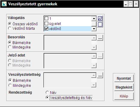 tartoznak. A többes választék segítségével megadhatóak a veszélyeztetettségek. A listát rendezhetjük 'Név' vagy 'Veszélyeztetettség és Név' szeint. |