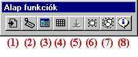 Egy már elmentett beutaló formátumot tölthetünk be a "Beutaló formátum betöltése a lemezről" (1) gomb megnyomásával. Új beutaló formátum készítését a "Beutaló formátum nevének megadása" (2) gomb megnyomásával kezdhetjük el. Az ekkor megjelenő "Beutaló nevének bekérése" című ablakban adhatjuk meg, a készítendő beutalónk alaptulajdonságait. A "Név kiíratás be-, ill. kikapcsolása" (3) gomb egyszeri megnyomása után, a beutaló formátumon található objektumok bármelyike fölé mozgatva az egérkurzort, az ablak fejlécében megjelenik az adott objektum neve. A gomb újbóli megnyomásával ez a funkció kikapcsolható. A "Méretező rács kiíratás be-, ill. kikapcsolása" (4) gomb egyszeri megnyomása után, a beutaló formátumon látható méretező rács (négyzetháló) eltűnik. A gomb újbóli megnyomásával ez a funkció visszakapcsolható. Az "Összes kijelölés megszüntetése" (5) gomb megnyomása után, a beutaló formátumon található összes kijelölt elemről lekerül a kijelölés. A "Kijelölés lefedéssel" (6) gomb megnyomása után a beutaló formátum területén a szokásos Windows-os módszerrel egy téglalapot rajzolhatunk (az egér bal gombját nyomva tartva és az egérkurzort mozgatva, egy téglalap két átlós sarkát jelölhetjük ki, az egérgomb megnyomásától, az elengedéséig). Mindazok az elemek kijelölésre kerülnek, amelyek (akár csak részben is) beleesnek az általunk kijelölt téglalap területébe, illetve kijelölésük megszűnik, ha a téglalap megrajzolása előtt kijelölt állapotban voltak. Ennek a használata több objektum együttes méretezésénél ajánlott. A "Mindent kijelöl" (7) gomb megnyomása után a beutaló formátumon elhelyezett objektumok közül mindazok kijelölésre kerülnek, amelyek a gomb megnyomásakor nem voltak kijelölve, illetve mindazok kijelölése törlődik, amelyek a gomb megnyomásakor ki voltak jelölve. Az "Űrlap információk megjelenítése" (8) gombbal a beutaló formátumról kapunk egy információs ablakot. |