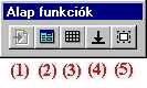 Az info lapunkat tölthetünk be az "Űrlap betöltése a lemezről" (1) gomb megnyomásával. Az info lap szerkesztését mindig ezzel a funkcióval kezdjük. A "Név kiíratás be-, ill. kikapcsolása" (2) gomb egyszeri megnyomása után, az info lapon található objektumok bármelyike fölé mozgatva az egérkurzort, az ablak fejlécében megjelenik az adott objektum neve. A gomb újbóli megnyomásával ez a funkció kikapcsolható. A "Méretező rács kiíratás be-, ill. kikapcsolása" (3) gomb egyszeri megnyomása után, az info lapon látható méretező rács (négyzetháló) eltűnik. A gomb újbóli megnyomásával ez a funkció visszakapcsolható. Az "Összes kijelölés megszüntetése" (4) gomb megnyomása után, az info lapon található összes kijelölt elemről lekerül a kijelölés. A "Kijelölés lefedéssel" (5) gomb megnyomása után az info lap területén a szokásos Windows-os módszerrel egy téglalapot rajzolhatunk (az egér bal gombját nyomva tartva és az egérkurzort mozgatva, egy téglalap két átlós sarkát jelölhetjük ki, az egérgomb megnyomásától, az elengedéséig). Mindazok az elemek kijelölésre kerülnek, amelyek (akár csak részben is) beleesnek az általunk kijelölt téglalap területébe, illetve kijelölésük megszűnik, ha a téglalap megrajzolása előtt kijelölt állapotban voltak. Ennek a használata több objektum együttes méretezésénél ajánlott.